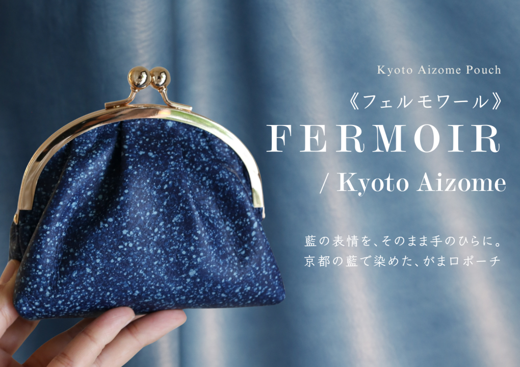 This gamaguchi pouch is handcrafted using Kyoto indigo-dyed leather.